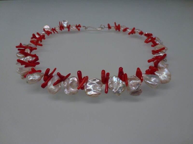Collier – Zuchtperlen mit roten Korallen Erfrischendes Collier aus Zuchtperlen mit roten Korallen. Silberverschluss Silber 925 gebürstet. Preis: 75.00€…